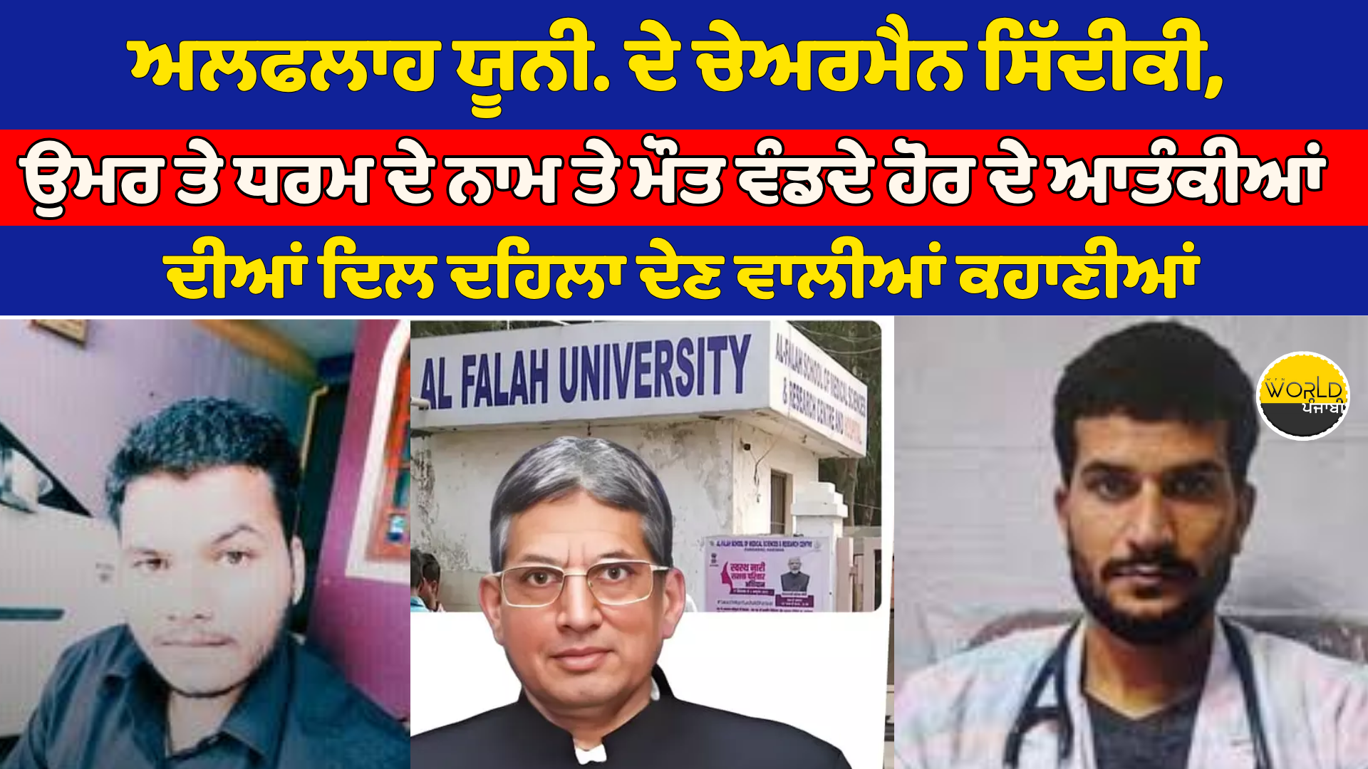 ਅਲਫਲਾਹ ਯੂਨੀ. ਦੇ ਚੇਅਰਮੈਨ, ਉਮਰ ਤੇ ਧਰਮ ਦੇ ਨਾਮ ਤੇ ਮੌਤ ਵੰਡਦੇ ਹੋਰ ਆਤੰਕੀਆਂ ਦੀਆਂ ਦਿਲ ਦਹਿਲਾ ਦੇਣ ਵਾਲੀਆਂ ਕਹਾਣੀਆਂ