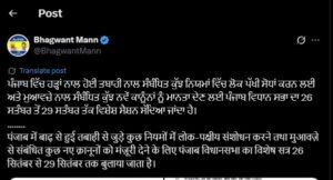 ਪੰਜਾਬ ਵਿਧਾਨ ਸਭਾ ਦਾ ਵਿਸ਼ੇਸ਼ ਸੈਸ਼ਨ 26 ਸਤੰਬਰ ਤੋਂ ਸ਼ੁਰੂ