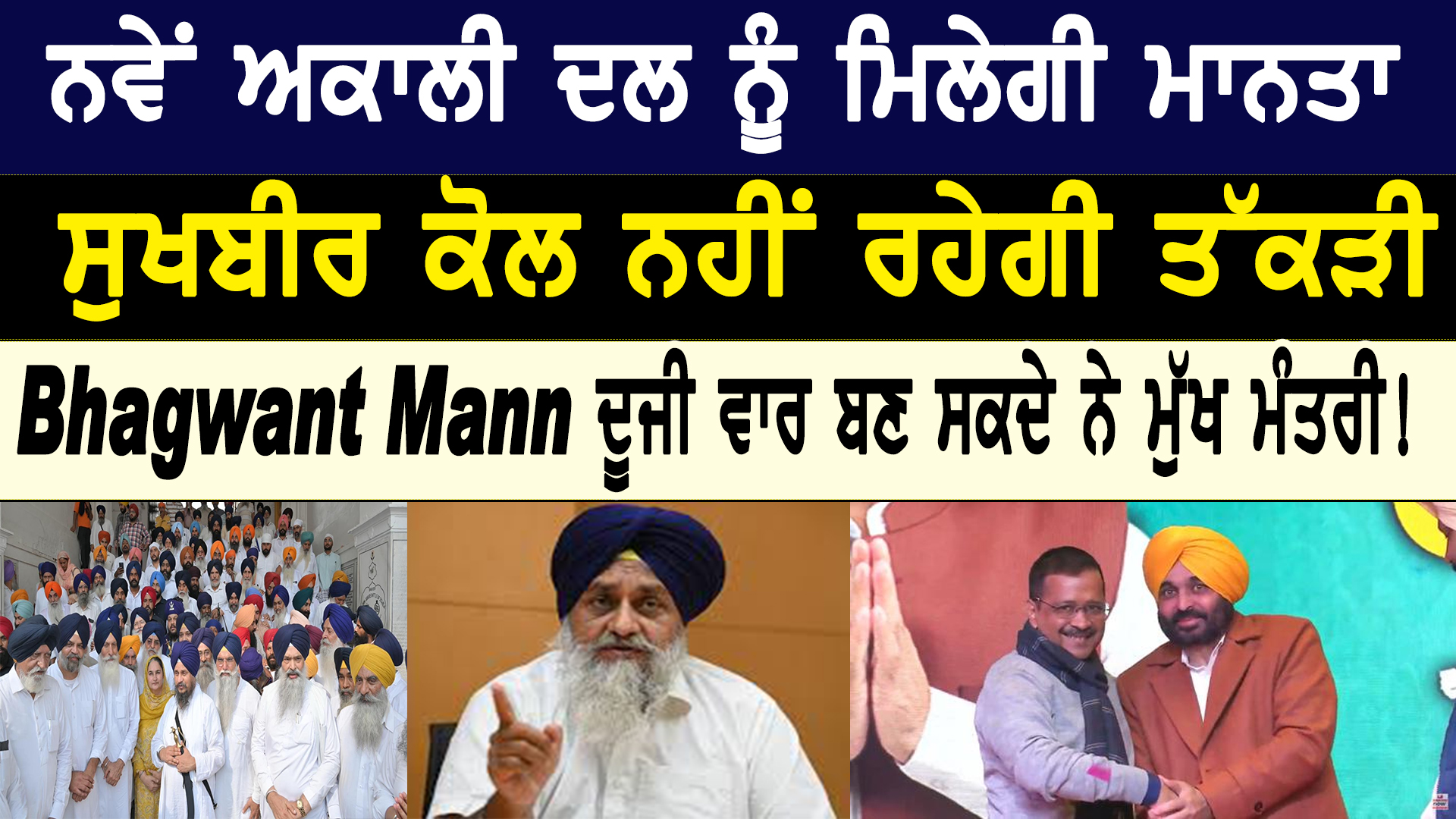 ਨਵੇਂ ਅਕਾਲੀ ਦਲ ਨੂੰ ਮਿਲੇਗੀ ਮਾਨਤਾ ਸੁਖਬੀਰ ਕੋਲ ਨਹੀਂ ਰਹੇਗੀ ਤੱਕੜੀ; Bhagwant Mann ਦੂਜੀ ਵਾਰ ਬਣ ਸਕਦੇ ਨੇ ਮੁੱਖ ਮੰਤਰੀ!